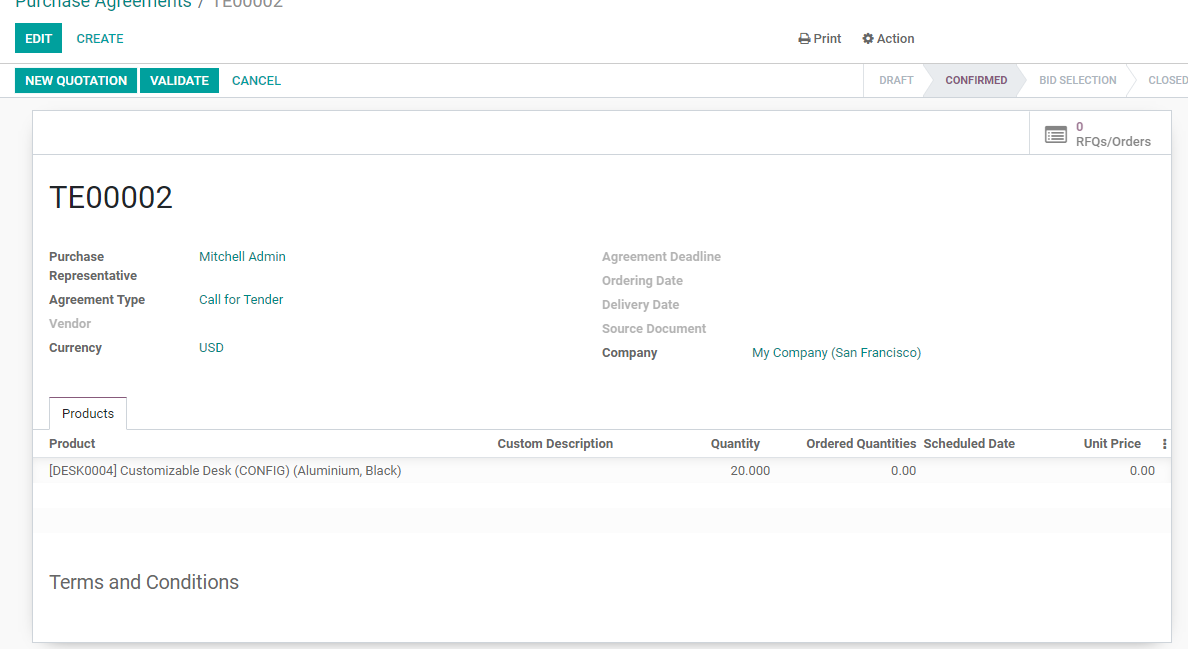 Odoo 14 Call For Tender And Blanket Orders